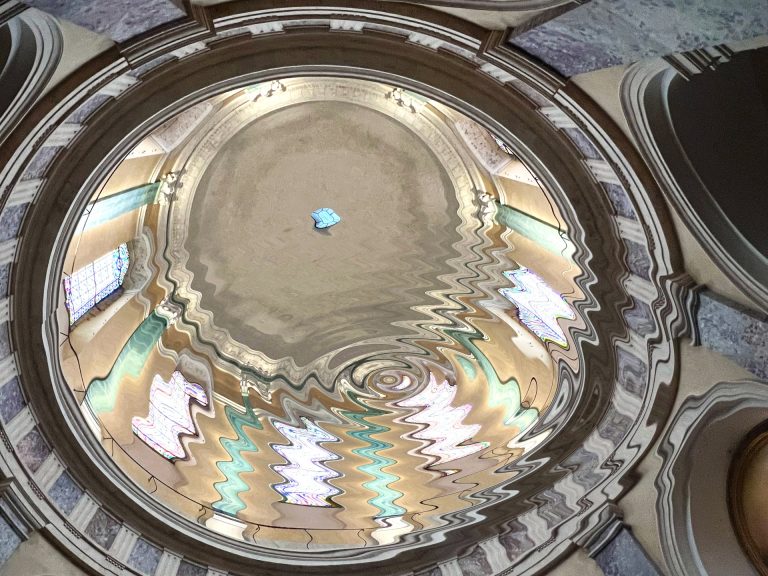 La Goutte d’eau de Stéphane Thidet est une installation présentée à la Chapelle de La Grave, à Toulouse. Chaque goutte tombe selon un rythme précis, résonnant dans la nef et sous la coupole. La surface sombre du bassin agit comme un miroir instable, reflétant le dôme et les arcs, inversant…